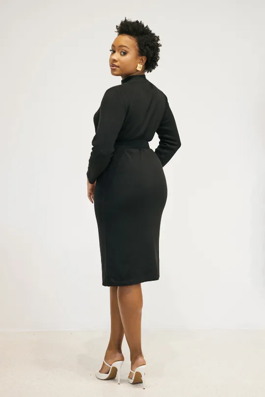 The Mock Neck Long Sleeved Dress combines sophistication with comfort. Its streamlined design features a subtle mock neck and long sleeves, making it suitable for work, casual outings, or evening events. Crafted from soft, high-quality fabric, it drapes beautifully and provides a polished yet relaxed look. Pair it with heels or flats for an effortlessly chic ensemble.